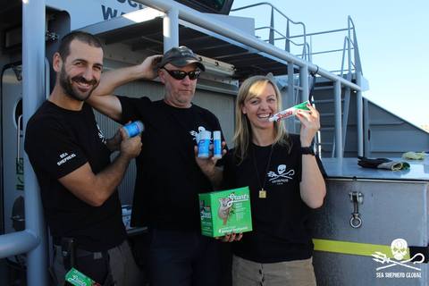 เราให้ยาสีฟันวีแกนแก่ลูกเรือที่ปฏิบัติหน้าที่โดยตรงบนเรือ SSS Steve Irwin ซึ่งมีท่าจอดเรือใน Williamstown, Victoria Sea Shepherd เป็นองค์กรไม่แสวงหาผลกำไรที่ไม่ใช่ของรัฐบาลและเป็นองค์กรอนุรักษ์มหาสมุทรทางตรงชั้นนำของโลก